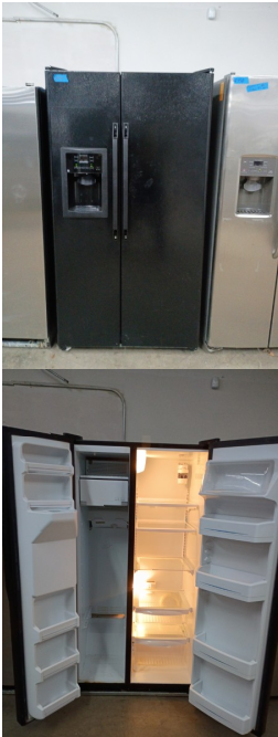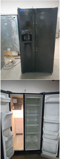 GE 25cf Black Refrigerator; Works perfectly however is missing some drawers and shelves
